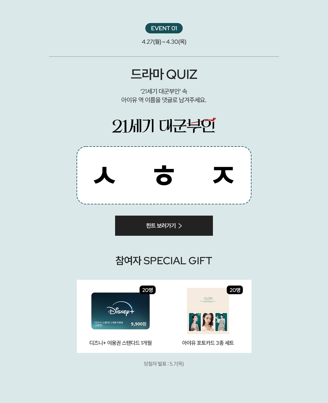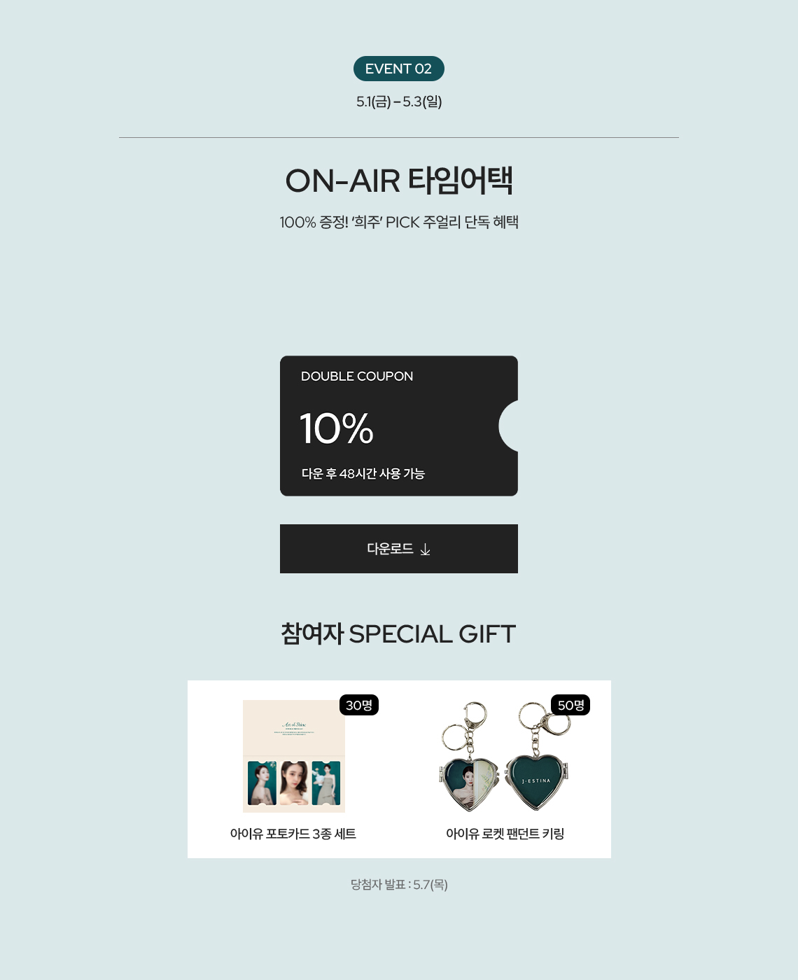 당첨자는 각 일정에 맞게 공지사항을 통해 발표됩니다.
