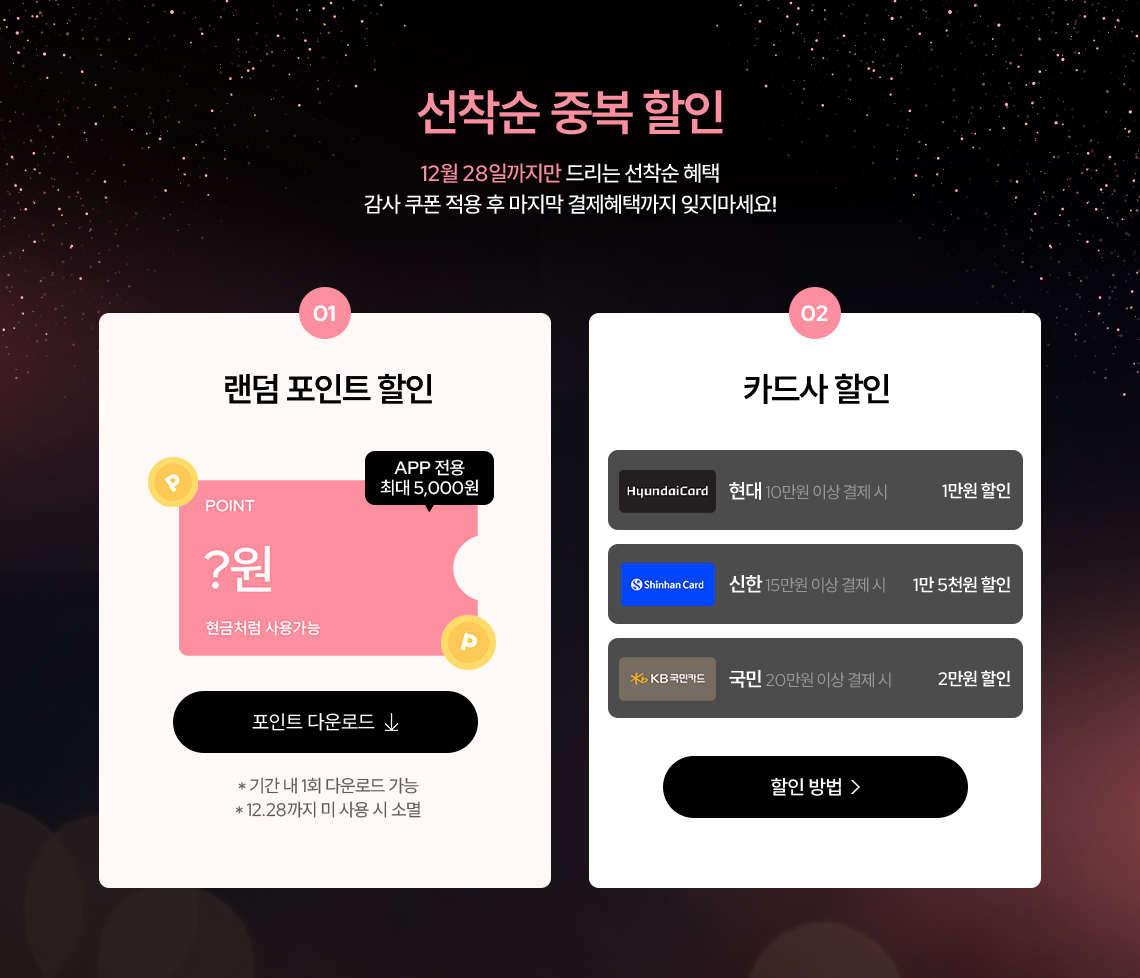 이벤트는 당사의 사정에 의해 예고 없이 변경 또는 종료 될 수 있습니다.