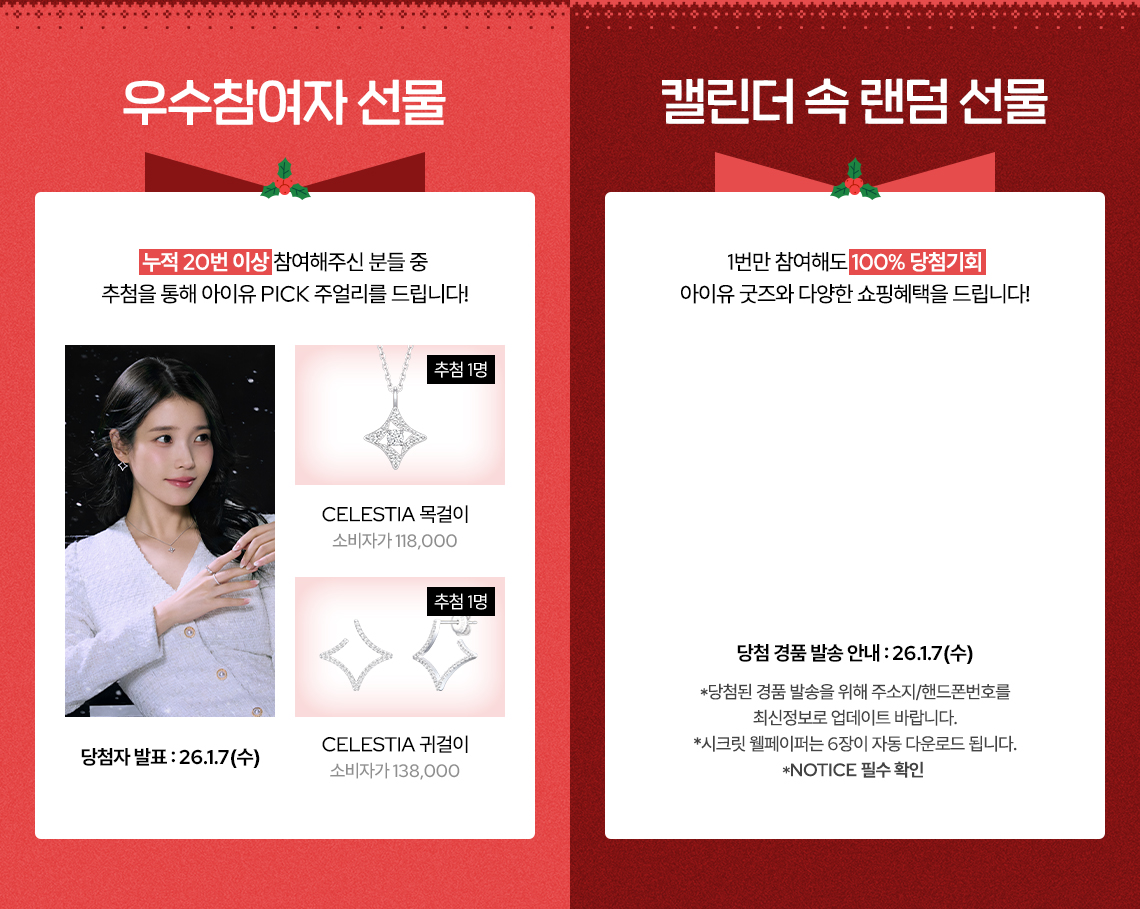 당첨자는 26.1.7(수) 공지사항을 통해 발송 안내 예정입니다.