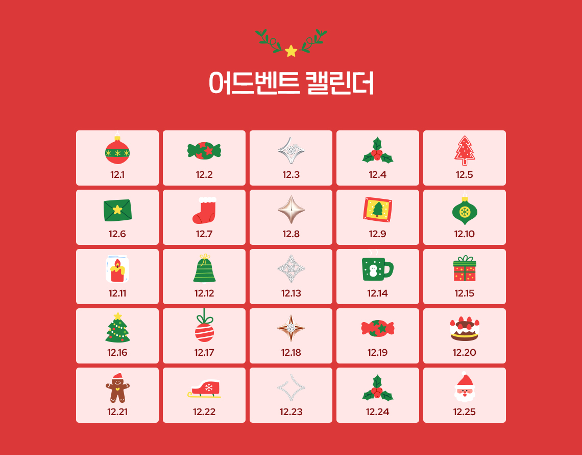 본 이벤트는 25.12.1(월) 부터 25.12.25(목) 까지 정해진 일자에 출석 완료한 고객에 한 해 참여 가능합니다.