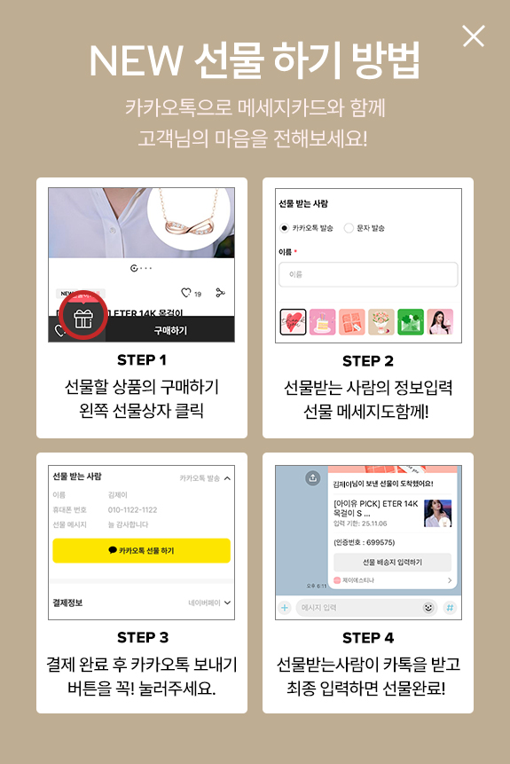 본 이벤트는 선물하기 서비스를 이용하여 10만원 이상 실 결제 후 응모 가능합니다.