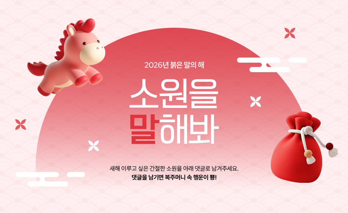 본 이벤트는 25.12.29(월) 부터 26.1.11(일) 까지 댓글로 소원을 작성해주신 고객에 한 해 참여 가능합니다.